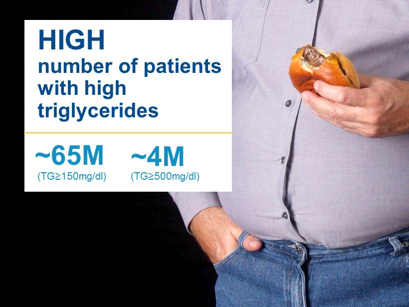 HIGH number of patients with high triglycerides 5 ~4M ~65M (TG≥150mg/dl) (TG≥500mg/dl)