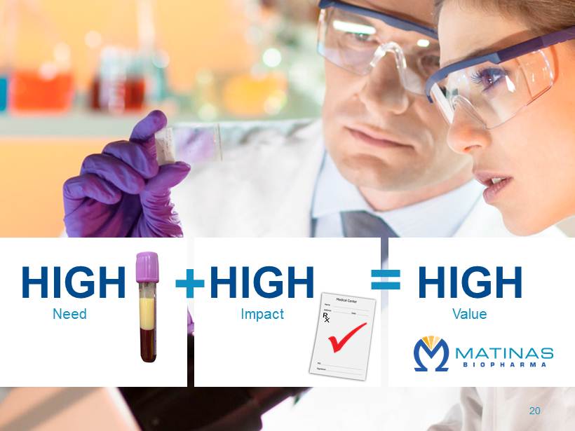 Also in our Omega - 3 pipeline MAT8800 – Proprietary Omega - 3 Discovery Program Treating Fatty Liver Disease NAFLD NASH • Common: 30% of U.S. population • A leading cause of cirrhosis • NO APPROVED TREATMENT OPTION MAT9001 Dyslipidemia & cardiovascular indications • Heart disease is the #1 killer 19