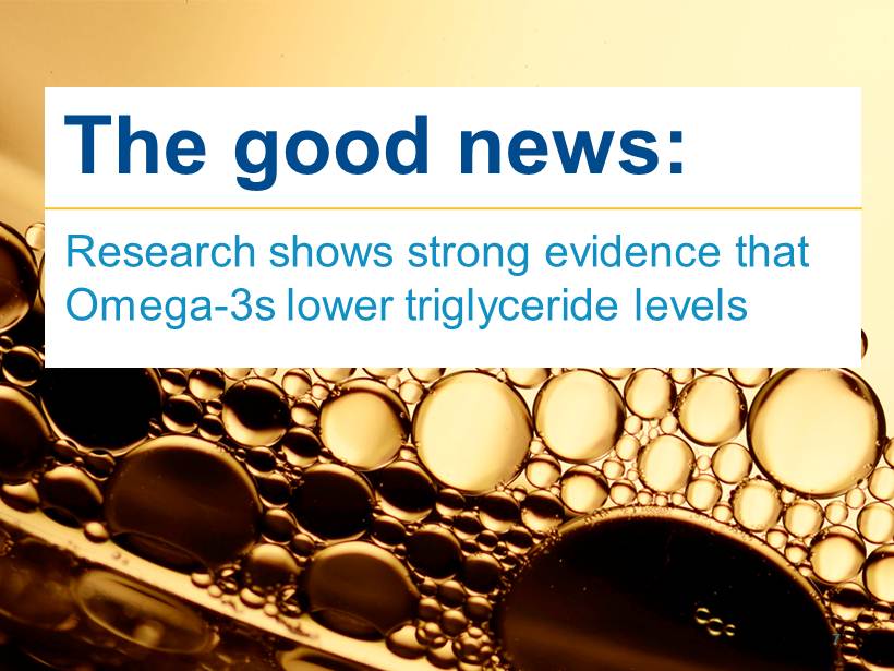 The good news: Research shows strong evidence that Omega - 3s lower triglyceride levels 7