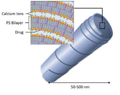 The structure is formed when a series of solid lipid sheets engulf drug molecules, a process referred to as “encochleation.” Encochleation, developed by Matinas and Rutgers New Jersey Medical School, involves combining calcium and soy-derived PS, two naturally occurring materials classified as GRAS (generally recognized as safe), through a stirring process to envelop the active pharmacological ingredient. The result is a nano-size encochleated drug formulation (Figure 2).
